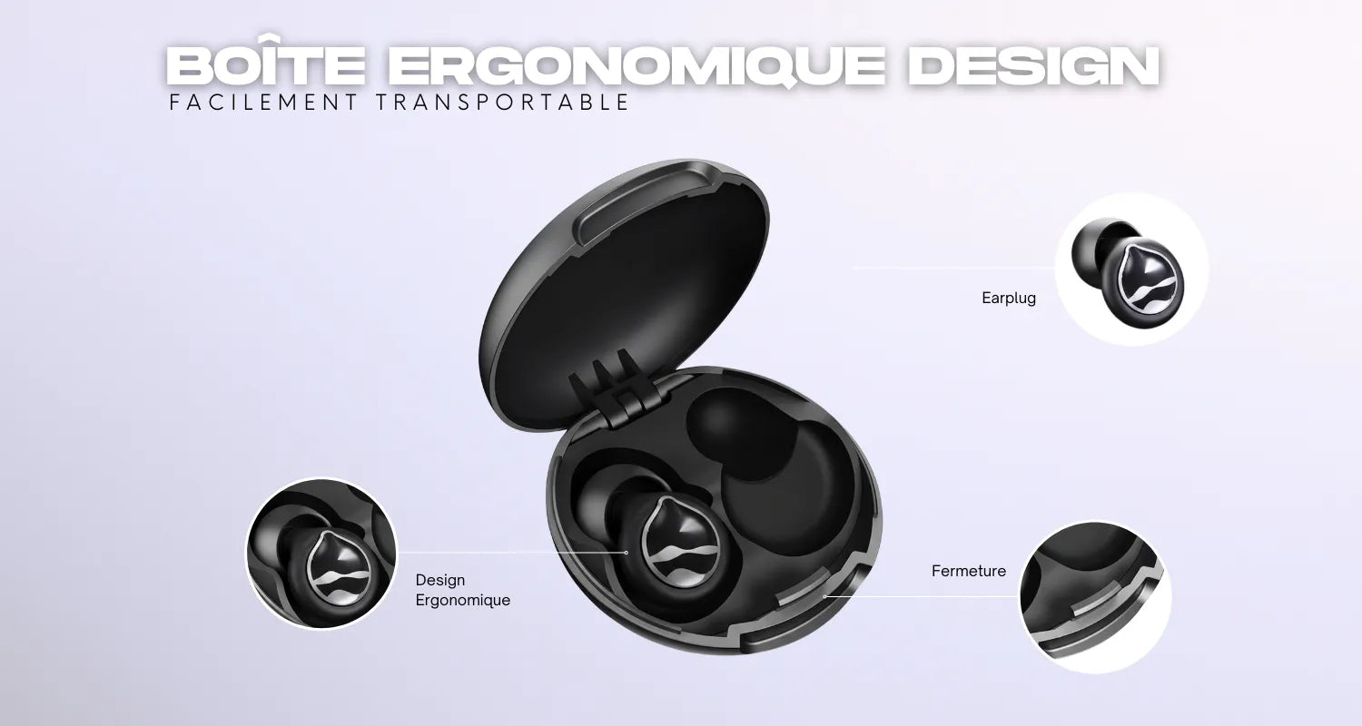 Réduction sonore performante – Double filtre physique amovible pour une atténuation jusqu’à 50 dB, idéale contre les ronflements, le trafic ou le bruit ambiant. Le silence devient votre nouvel allié.